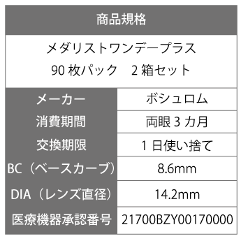 【処方箋不要】 【送料無料】 【楽天SPUポイント最大7倍】 メダリストワンデープラス 90枚パック 2箱セット ( コンタクトレンズ コンタクト 1日使い捨て ワンデー 1day ボシュロム 90枚 90枚 マキシボックス )